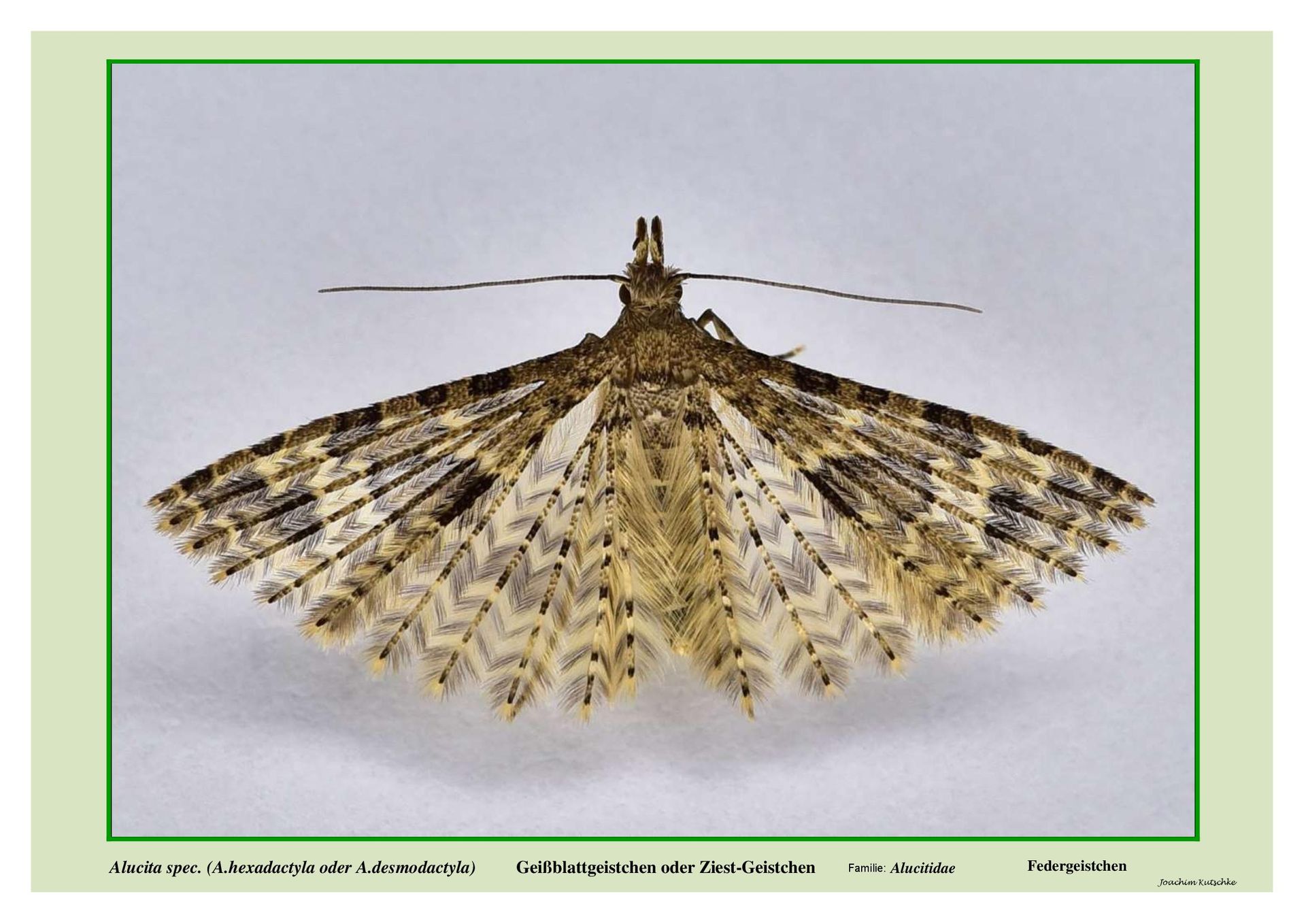 Der Künstler und Hobby-Entomologe Joachim Kutschke, mit über 20 Jahren fotografischer Erfahrung, dokumentiert diese faszinierenden Lebewesen. Seine Arbeiten entstehen sowohl in ihrer natürlichen Umgebung als auch in einem eigens dafür eingerichteten Fotostudio im heimischen Umfeld. Die Tiere werden nach der Aufnahme wieder freigelassen. Seine fotografische Dokumentation wird in einer Datenbank erfasst, die er auch der wissenschaftlichen Forschung, beispielsweise an der Friedrich-Schiller-Universität Jena, zur Verfügung stellt. Durch seine langjährige Arbeit konnte Kutschke bereits zwei bislang unbekannte Arten wiederentdecken, was die Bedeutung seiner fotografischen Arbeit unterstreicht.